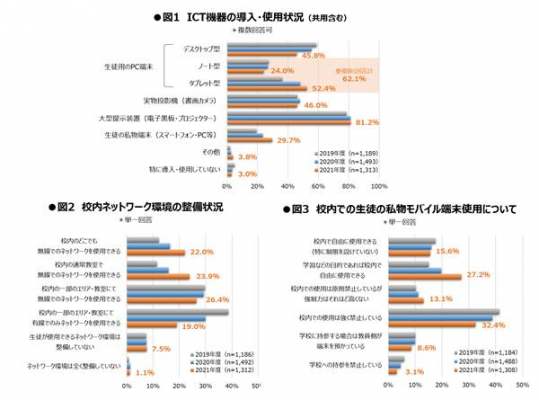 生徒用のモバイルICT端末を導入している高等学校は62.1%、校内の無線ネットワーク環境整備も急進