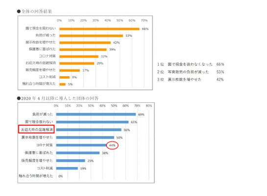 ないで済む」(66%)、「写真販売に係る負担が減った」(53%)、「展示枚数を増やせた」(42%)が上位項目となった。