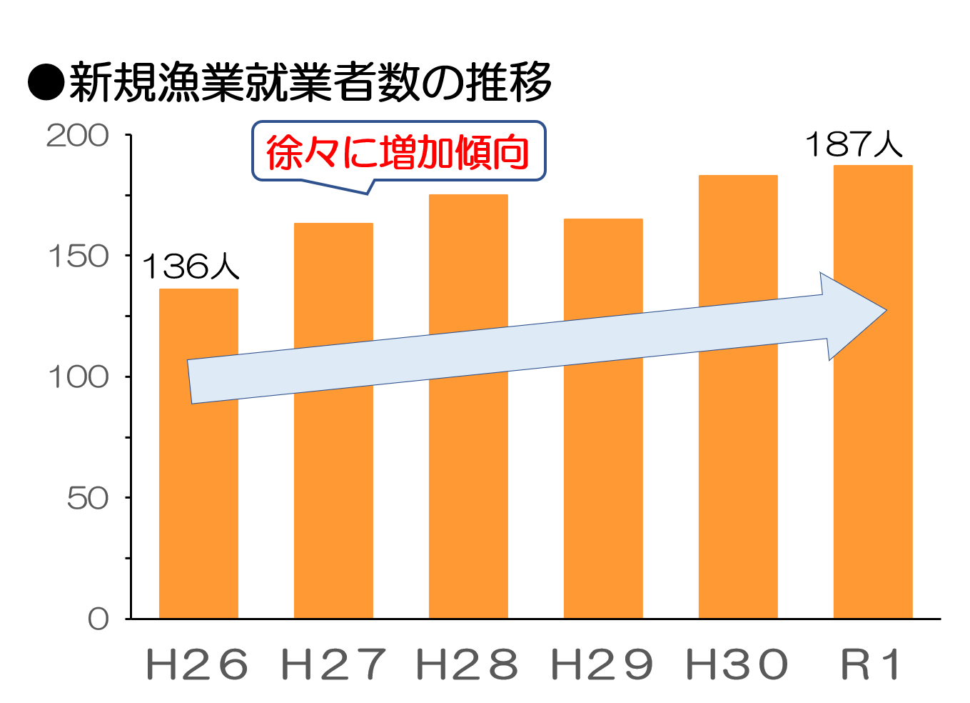 その一方で、移住者の就業が増えたことにより、新規漁業就業者は、増加傾向にあります。しかし、それでも廃業や離職による就業者全体の減少に歯止めをかけるには至っておらず、今後、移住者や県内の若者、漁家出身の後継者など、それぞれに応じた取り組みで、漁業の担い手の確保、育成対策を強化していく予定です。