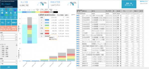 利用開始当初は、1つの営業本部60人での利用を開始しましたが、運用から2か月後には4営業本部に展開され、現在は170人がダッシュボードを活用しています。営業担当者の作業負担が軽減され、本来の営業業務に専念できるようになっただけでなく、営業本部ごとバラバラだった実績管理がMotionBoardへ統一化されたことで、会議の場が単なる報告目的ではなく最新のデータに基づいた戦略的策定の場へと変化し、マネジメントレベルの引き上げにも繋がっています。