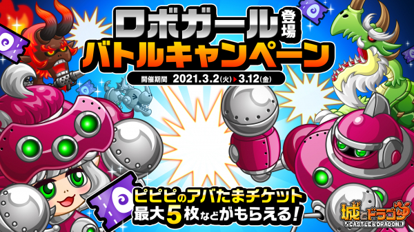 株式会社アソビズム(本社:東京都千代田区、代表取締役:大手智之)は、App Store・Google Playにて配信中の『城とドラゴン』で、「ロボガール登場バトルキャンペーン」を2021年3月2日(火)より開催します。