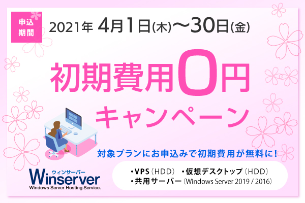 2021年4月、Winserver(ウィンサーバー/運営会社:アシストアップ)は、初期費用0円キャンペーンを実施いたします。