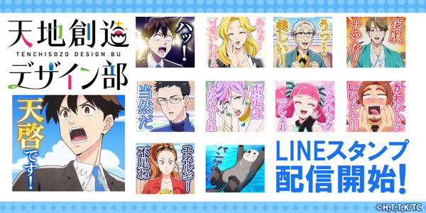 「面白くて、ためになる」と多くの反響を巻き起こした“生き物創造お仕事コメディ” アニメ「天地創造デザイン部」がLINEスタンプとなって株式会社インクルーズの販売アカウントより初登場です!