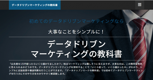 「デ―タドリブンマーケティング」は、データに基づいて行うマーケティングのことで、今注目を集めている手法です。本サイトでは、初めてデータドリブンマーケティングを行う方に向け、その考え方とやり方を紹介。「ITに苦手意識がある」という方でも理解しやすいよう、シンプルにわかりやすく解説しているのが特徴です。また、データ取得におすすめのツール紹介やお役立ちコラムも充実。「最近よく耳にするけど難しそう」「何から手を付ければいいかわからない」という方は、ぜひアクセスしてみてください。
