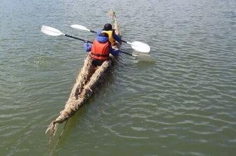 湖岸で自ら葦を刈り、その葦を束ねて自ら葦舟を作り、その葦舟を自ら漕いで、その性能を競う大会を実施する。