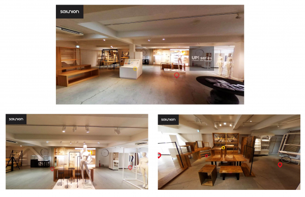 ブランドイメージに合った店舗・展示スペースを仮設し商品を陳列、360°カメラで撮影します。仮想空間上に空間を再現することで、WEB上で訪れたユーザーが自由に視点を移動させ、気になる商品の詳細もワンクリックで確認することができます。