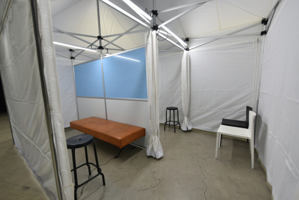 世界各国で活用されるスイス製簡易組み立てテントで、スポーツ施設や商業施設でのイベントのブースの他、災害時の救護室、インフルエンザ予防接種会場など国内の医療現場でも広く活用されています。