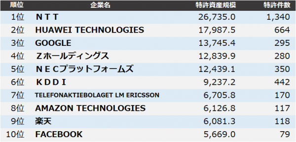 その結果、1位 NTT、2位 HAUWEI TECHNOLOGIES、3位 GOOGLEとなりました。