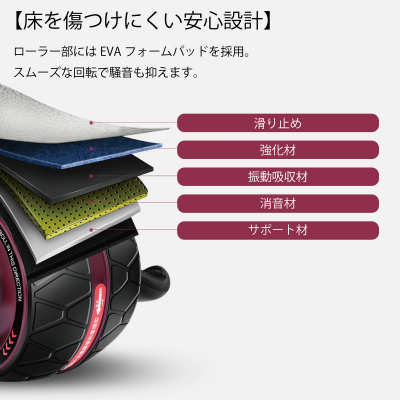 【静音対策】 ローラー部にEVAフォームパッドを採用し、床を傷つけにくく、騒音も抑える。