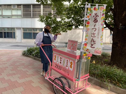 『見つけたらラッキー!ピンクリヤカー』を合言葉にリヤカーにてフルーツサンドを銀座から月島・勝どき築地・豊洲など様々なエリアをまわりながら販売しています。
