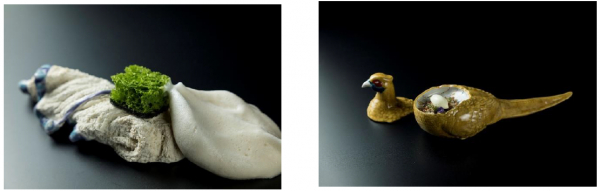 図1(左):展示会メインビジュアル 図2:「黄晶彩磁彩『雉』」(浅蔵宏昭 作)
