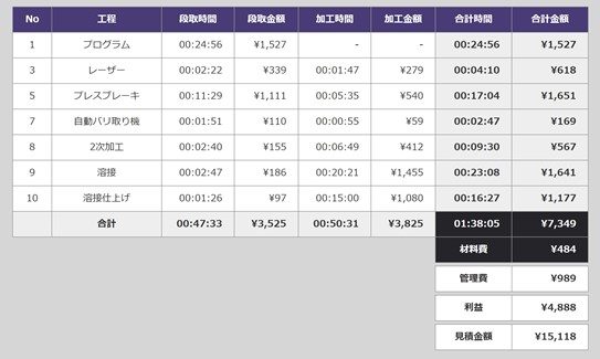 ◆レーザ加工機、ベンディングマシンと連携し、蓄積データに基づいた見積を瞬時に計算