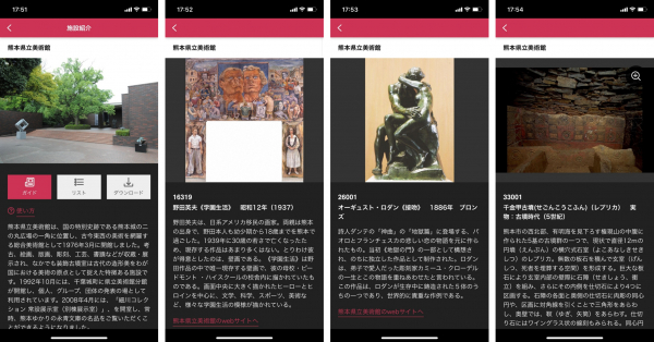 ガイド内容は、それぞれの博物館・美術館が独自に工夫して制作する仕組みを採用。館によってテキスト画面だけでなく写真や動画、音声など多様なスタイルで情報が配信されています。