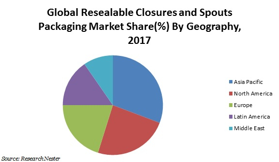 北米は、2017年の再封可能なクロージャーと注ぎ口包装市場の最も著名な地域市場です。北米地域は、米国とカナダの支援を受けて、世界の再封可能な再封可能なクロージャーと注ぎ口包装市場を支配すると予測されます。アジア太平洋地域は11.2%のCAGRで急速に成長している市場です。アジア太平洋地域は、2017年の収益の観点から、再封可能なクロージャーと注ぎ口包装市場の2番目に大きな市場を占めました。