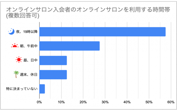 オンラインサロンを利用する時間帯として最も多かった回答は「夜」でした。