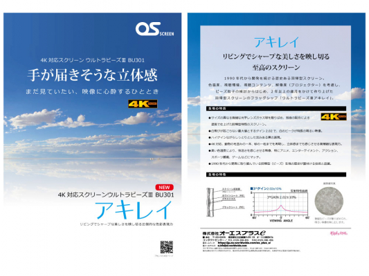 株式会社オーエスプラスe(本社:東京、代表:奥村正之)は、OS SCREENブランドより、リビングでシャープな美しさを映しきる至高のスクリーン生地、4K対応の「ウルトラビーズIII アキレイ(生地型式BU301)」を開発いたしました。