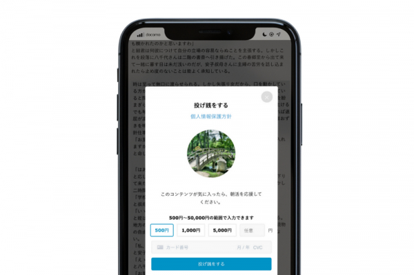 ※資金決済法に基づき、コンテンツに対して投げ銭を受け付ける様にして頂きます様お願い致します。