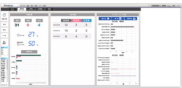 コアコンセプト・テクノロジーでは、営業部門のKPIである「提案数」「商談数」「決定数」の当月内の状況が担当者別にリアルタイムで可視化された「提案活動ボード」と、 KGIである「売上」「仕入」「粗利(限界利益)」の3つの数字を担当者別に把握できる「計数表ボード」の2種類を構築しました。これらのボードの運用により、営業活動が可視化され、営業成績の高い社員の行動に対する気づきを社員同士で共有できるようになったほか、データに基づく効率的な提案活動が可能になりました。