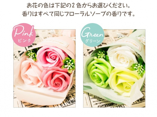 ミニブーケは石鹸素材で作られた枯れないお花なのでお手入れの必要がなくそのまま飾っていただけます。