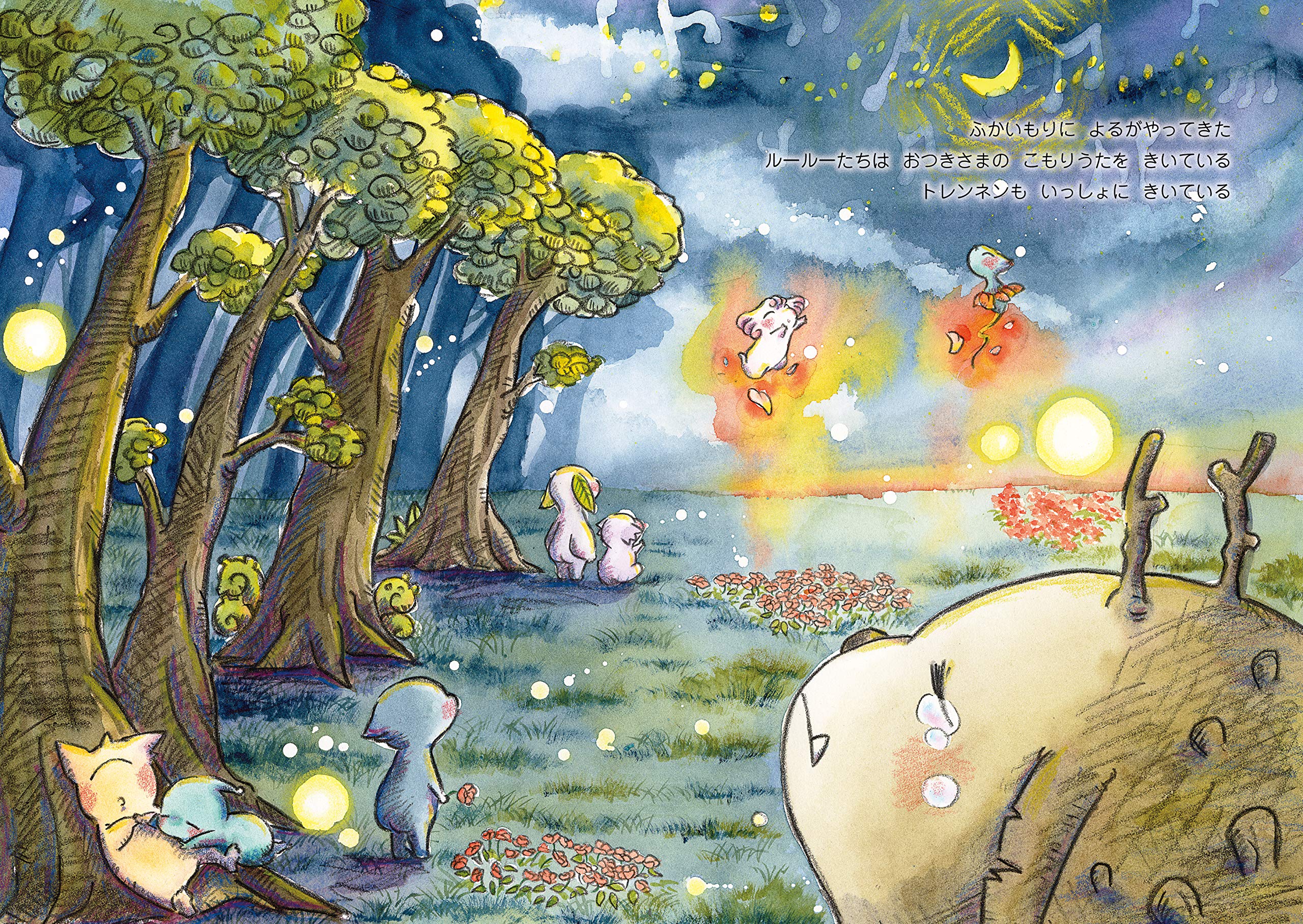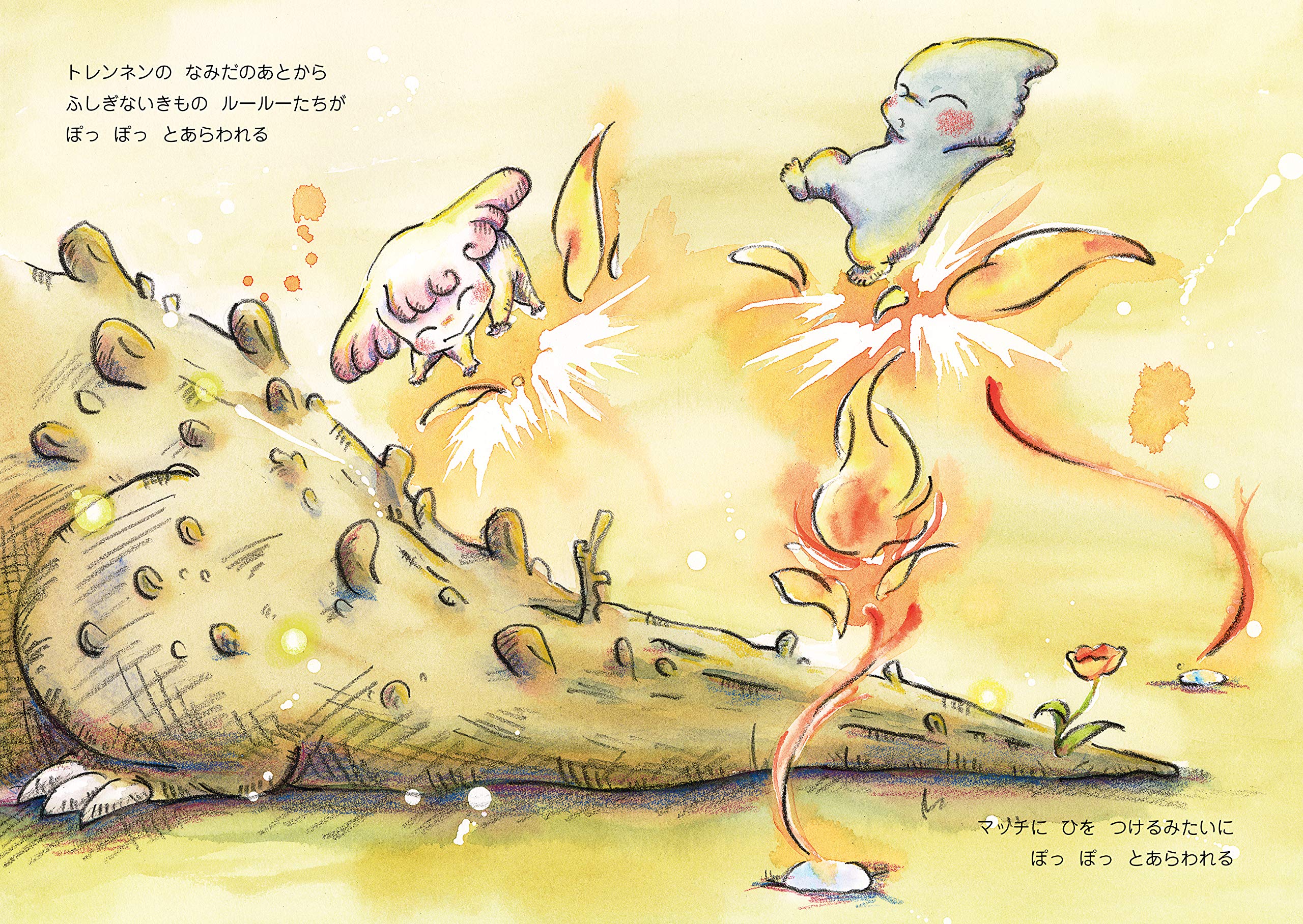 トレンネンは、スクウォンクという伝説上の動物が元になっています。体はイボと痣に覆われていて、いつも涙を流して泣いているそうです。ルールーは純粋無垢な存在。あどけない表情で、人間の子どもにも見えるように描きました。
