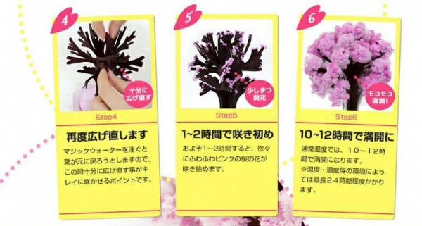 紙で出来た木に魔法の水をかけると、わずか12時間で咲く不思議な桜です。