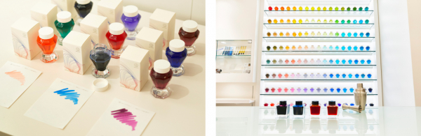 鮮やかな144色の瓶入りカラーインクは、常に全色のお試しサービスも対応しており、お好きなカラーとの出会いを提供。また、人気インクブレンダー石丸治氏が、カクテルシェーカーを使い、カラーサンプルや希望のイメージに合わせて、お客様の目の前で調合、世界に一色だけのオリジナルカラーをお楽しみいただけるイベント※(「インク工房」)も実施します。