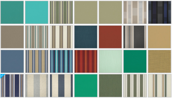 古き良き米国を感じるデザインのシート生地には、湿気やカビによる劣化を防ぎ日光や雨風による色褪せにも強い屋外用ファブリックのトップブランド「サンブレラ」のアクリル生地を使用しています。また、オールドクラシックなカラーリングやストライプパターンの生地が有り、別売のチェアとも組み併せてもお洒落な空間を演出できます。