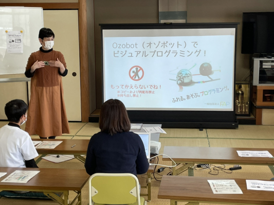 一般社団法人FAP(所在地:石川県金沢市、代表理事 浅岡 正教/以下;FAP)は、石川県内の地域住民が主体となったキッズプログラミングスクールや学校での指導者などを対象にした「プログラミング講師人材育成講座(全3回)」を2020年12月より開始し、講座に参加した金沢市西小学校地域コーディネーターらが講師によるプログラミング学習ロボット「Ozobot(オゾボット)」と「iPad」を使ったプログラミング学習体験会が金沢市西公民館にて、2021年3月25日(木)開催されました。