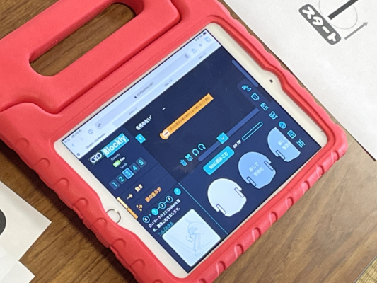 続いては、アプリケーション「Ozoblockly(オゾブロックリー)」を使い、オゾボットを自由自在に動作させるプログラミングする体験学習を実施しました。「Ozoblockly(オゾブロックリー)」はオゾボットに対応したプログラミング学習アプリで、指示がかかれたブロックを組み合わせてプログラミングし、オゾボットをラインがなくとも思い通りに動かすことができます。