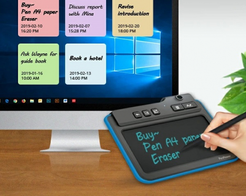 手書きの文字やイラストデータをパソコンに取り込むのは意外と手間がかかりますが、本製品の専用ソフトを起動したまま手書き入力したデータを本体のボタンを押すだけで誰でも手軽にパソコンに取り込むことができます。取り込んだデータはLINE、Facebook、Skype、QQ、WeChatなどのSNSで共有、Word / Excelなどのオフィスアプリへ貼り付けできます。また、OutlookやGoogleのカレンダーへ保存することも可能で、パソコンやスマホでスケジュールを確認できます。パソコンと接続しなくてもデータを保存でき、パソコンと接続すればデータを取り込めます。OCR機能で手書きの文字をテキスト文字へ変換可能。約50,000回以上の消去サイクルをサポートするので、紙を節約できてエコにつながります。仕事のスピードも早くなり、脱ハンコへの電子署名化への流れに最適なWrite2Goはいかがでしょう。