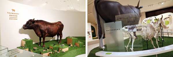 兵庫県立但馬牧場公園(新温泉町)内にある「但馬牛博物館」では、但馬牛・神戸ビーフの歴史や魅力、但馬牛にかかわる人々などを、様々な展示物、プロジェクションマッピング、ジオラマなどで、楽しく学ぶことができます。また、2019年に「兵庫美方地域の但馬牛システム」が日本農業遺産に認定されたことを機に、「農業遺産体験館(仮)」を建設し、2021年夏にもオープンします。体験館では、農業遺産とは何か、なぜ但馬牛システムが認定されたのかを詳しく学ぶことができます。