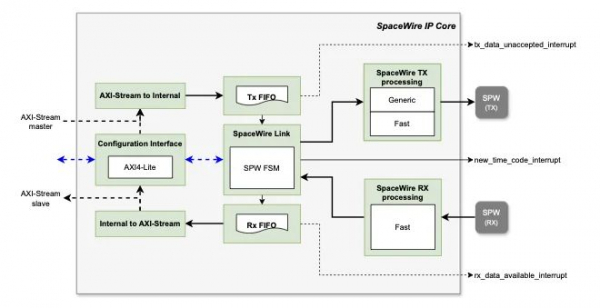 SpaceWireは、全二重双方向のシリアル通信リンクであり、各方向に2対の差動ペアを使用してデータをエンコードします。本IPコアは、CubeSatなどのナノサテライト、宇宙カメラ、オンボードコンピュータ(OBC)、および組み込みマイクロコントローラを含む多くの航空宇宙マイクロエレクトロニクスデバイスに適用可能です。