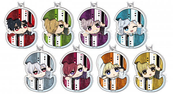 本商品は、全8種([夏羽]、[隠神]、[織]、[晶]、[ミハイ]、[飯生]、[紺]、[野火丸])のアクリルチャームの中から、ランダムで1つ封入されます。