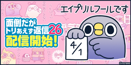 株式会社インクルーズ(東京都渋谷区、代表取締役社長 山﨑 健司)は、LINE株式会社(東京都新宿区、代表取締役社長 出澤 剛)が運営するコミュニケーションアプリ「LINE」内のスタンプショップにて、「面倒だがトリあえず返信26」を2021年4月1日(木)に、日本のLINE Creators Market向けの日本語ver.と、主に台湾のLINE Creators Market向けの中文繁体字ver.を同時に配信開始致しました。