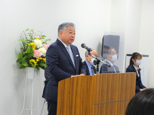 昨年の入社式は、新型コロナウイルス感染拡大防止の観点から東京都内での規模縮小での開催となりましたが、本年は感染予防対策をとった上で鴻巣研究所にて執り行いました。
