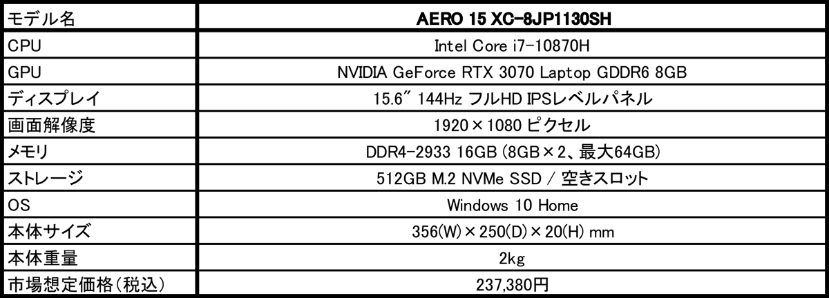 2021年4月9日 - GIGABYTE Technology Co., Ltd. 台湾・新北市 - コンピュータテクノロジーで世界をリードするGIGABYTE Technologyは、クリエイター向けノートPC「AERO 15シリーズ」に、NVIDIAの最新GPU、GeForce RTX 3070を採用した新モデル「AERO 15 XC-8JP1130SH」を追加、4月10日より販売いたします。市場想定価格(税込)は237,380円です。