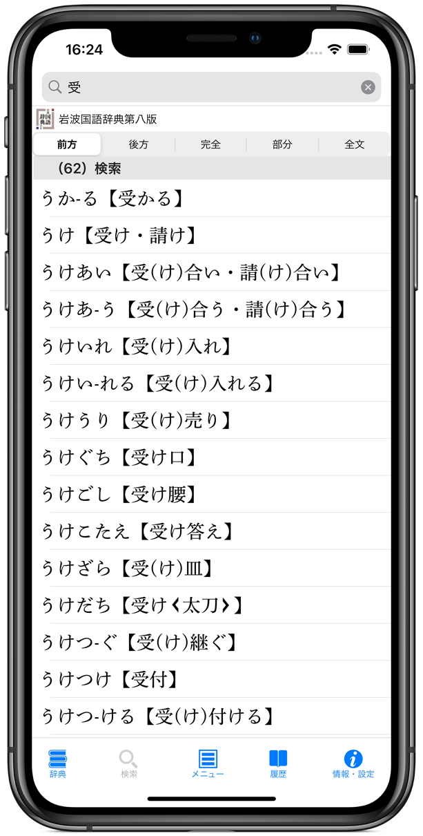 それぞれの検索方法で、文字を入力すると候補見出し語が表示されるインクリメンタルサーチに対応(部分一致/全文検索を除く)