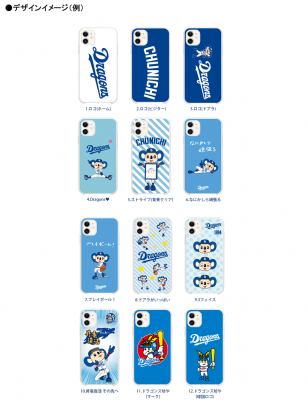 球団ロゴやかわいいマスコットキャラクターデザインのケースや、懐かしのドラゴンズ坊やのデザインもラインナップを増やして登場。