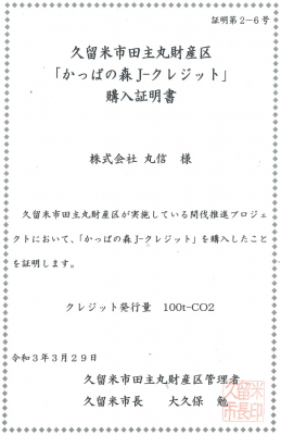 ■久留米市田主丸財産区「かっぱの森Jークレジット」について