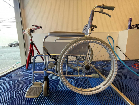 基本のサービスメニューのプレミアムバイクウォッシュやコーティングなどに加え、この度、車椅子の洗浄もサービスメニューに加わりました。