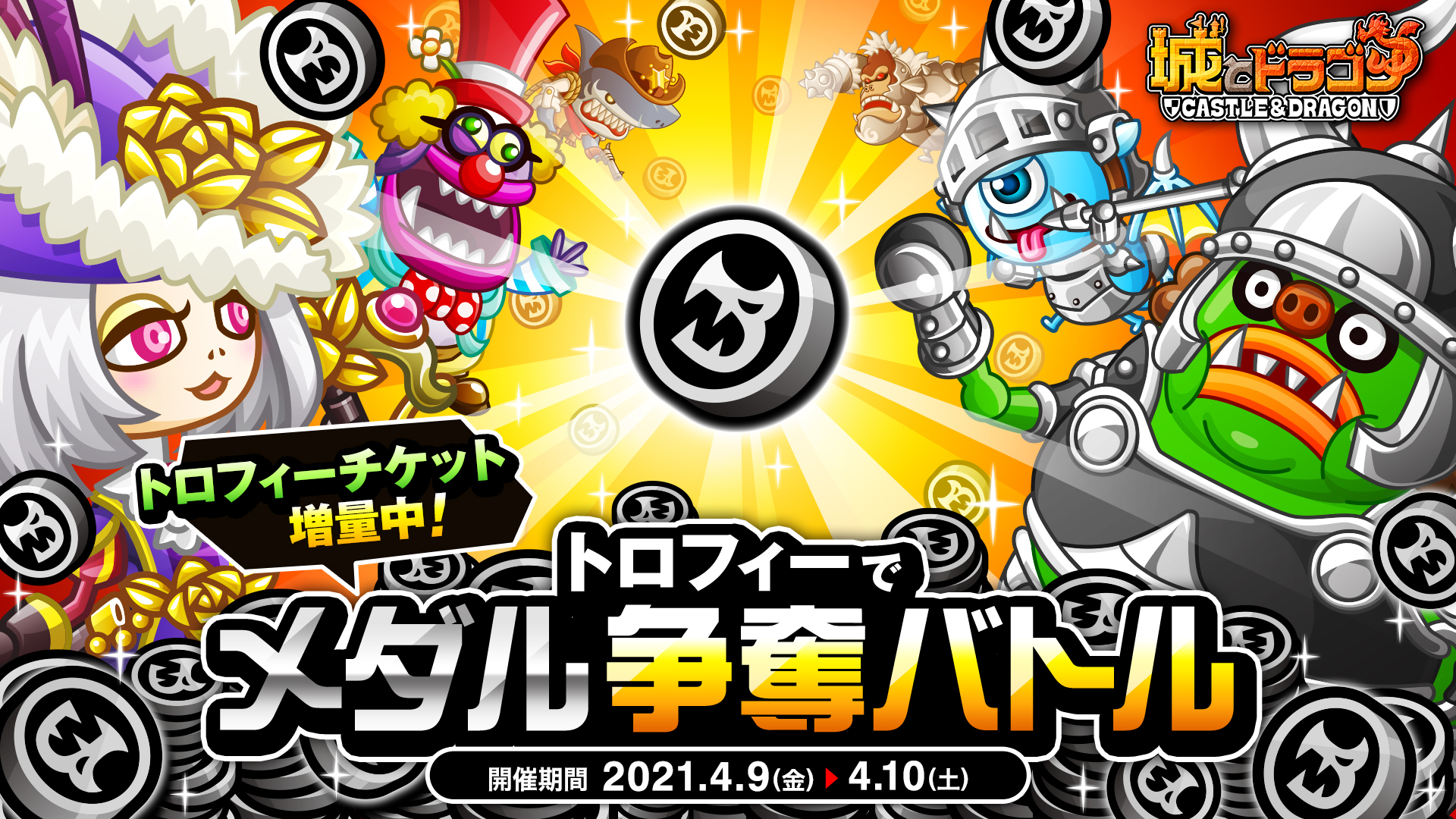 上記期間中、「トロフィーバトル」の全モードを対象に、勝利すると1日3回まで“3枚/5枚/10枚/20枚”いずれかのドラゴンメダルがもらえます。