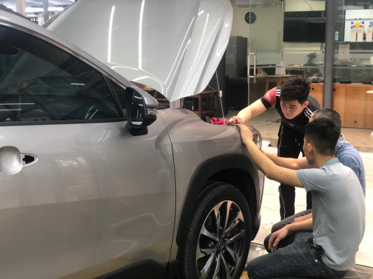 具体的には、日本のフランチャイズ店様へのプロテクションフィルム技術研修と、ベトナム店舗様へのプロテクションフィルム技術研修を同時に実施するという試みです。
