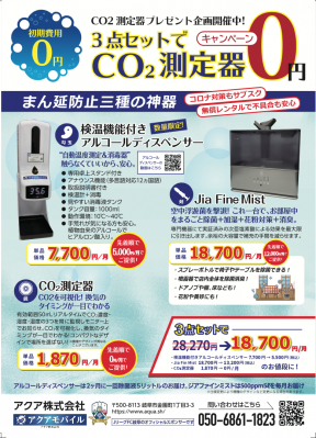 Co2 測定器 上記いづれかを申し込みにてプレゼントいたします。