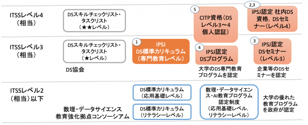 IoT機器などにより採取される膨大なデータからの価値を創生し経済成長や生産性向上に活かすことが喫緊の課題となっている現在、データサイエンティスト(DS)へのニーズが高まっています。国内外のデータサイエンス分野の教育/資格についての取組み調査や関連機関へのアンケートを行ったところ、高等教育段階のカリキュラムや社会人向け学び直しプログラムは既に存在しますが相互の関係が明確になっているとは言い難い状況です。