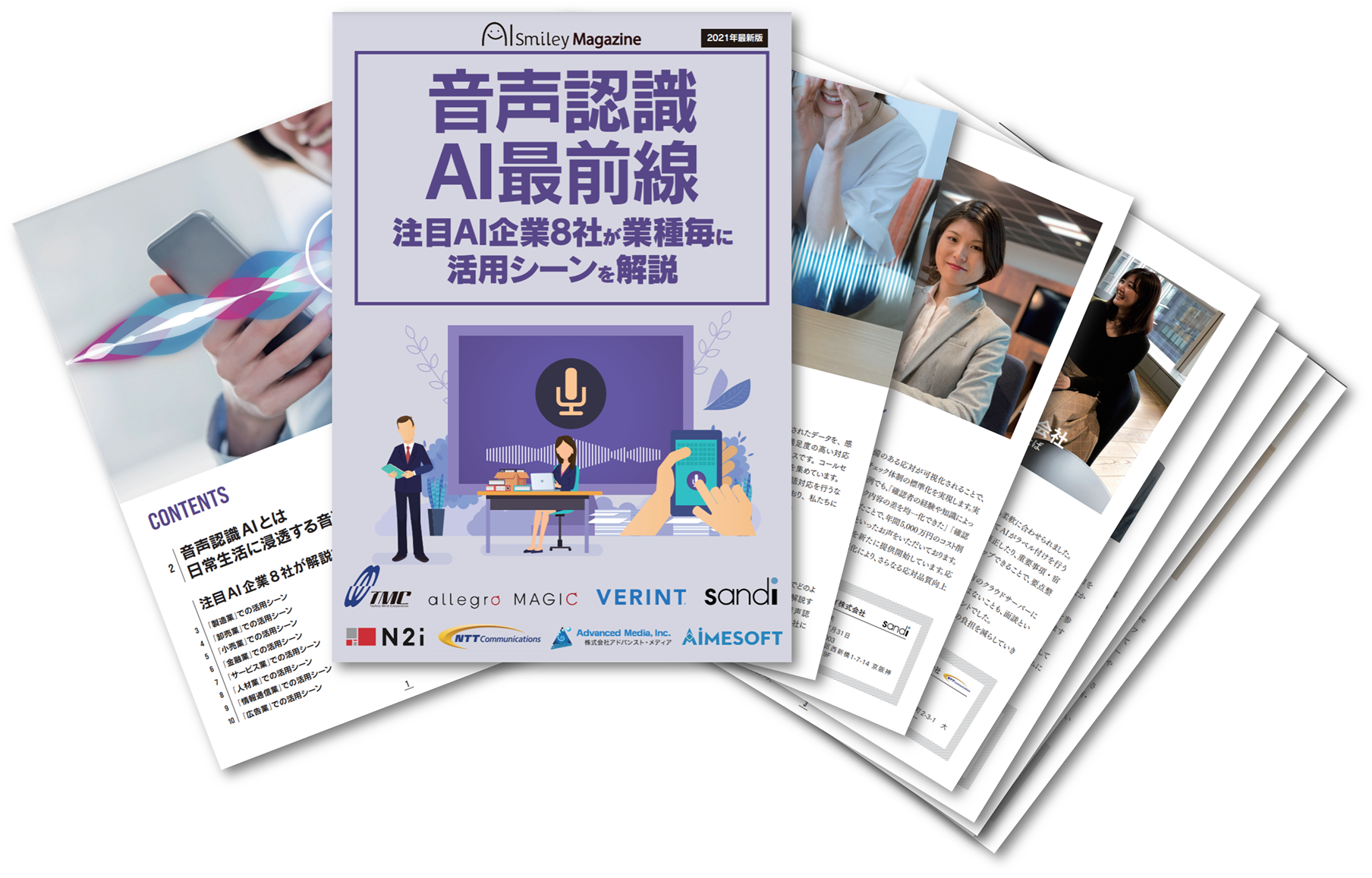 その他にもスマートスピーカーや小型翻訳機など、「AI」と認識していないところで、生活の中に広く浸透しています。今回はそんな音声認識AIがビジネスシーンでどのように用いられているのか、「注目AI企業8社が解説する業種毎の活用シーン」としてご紹介します。音声認識AIを用いたサービスを最前線で提供される各社に話を聞きました。
