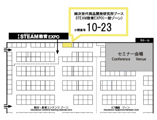 株式会社次世代商品開発研究所(本社:大阪府大阪市、代表:奥村正之)は、東京ビッグサイト青海展示棟において5月12日(水)~14日(金)に開催される「第2回STEAM教育EXPO」に出展いたします。出展ブースでは小学校・幼稚園の教育現場向けて、新たに導入が進むICT機器を活用した”ものづくり”教材を展示し、ICT教育導入に伴うお悩みを解消いたします。