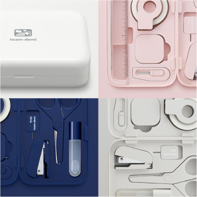 8つのアイテムをコンパクトなケースに収納したステーショナリーセット。1984年に累計約650万個を売り上げた大ヒット商品が生まれ変わりました。デジタル化が進む中、思わず手に取りたくなる文具を目指し、「切る・貼る・綴じる・測る」という文具の本質を追求した“あるとうれしいアイテム”を厳選。プラスの技術と深澤直人氏のデザインの力が融合し、ディティールにまでこだわった美しいデザインへと仕上げました。