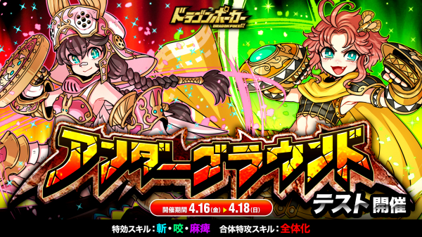株式会社アソビズム(本社:東京都千代田区、代表取締役:大手智之)は、App Store・Google Playにて好評配信中のリアルタイム合体カードバトル『ドラゴンポーカー』で、2021年4月16日(金)より「アンダーグラウンド」をテスト開催いたします。