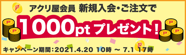 ・実施内容:アクリ屋会員に新規入会&ご注文でアクリ屋ポイント1,000ポイントプレゼント