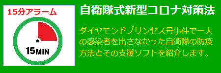 自衛隊式新型コロナ対策支援ソフト「15分アラーム」は、これを一般生活で簡単に行うものです。